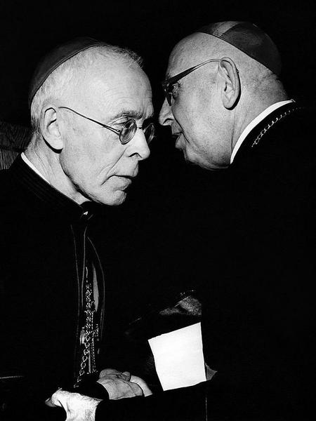 Le cardinal Journet, ici avec Pierre Mamie, en février 1965, à Fribourg