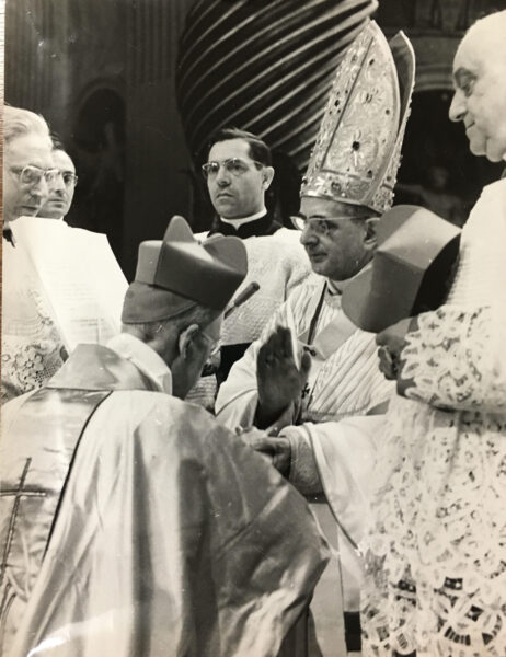 Charles Journet reçoit la barrette cardinalice des mains de Paul VI lors du Consistoire du 25 février 1965